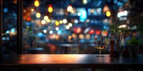 City Lights and Cozy Vibes: A warm glow emanates from a bustling city restaurant, inviting patrons to unwind and enjoy the evening's ambiance.