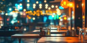 City Lights and Cozy Vibes: A warm glow emanates from a bustling city restaurant, inviting patrons to unwind and enjoy the evening's ambiance.