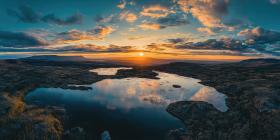 Sunset Symphony: A fiery sky paints its reflection on a tranquil lake, creating a breathtaking symphony of color and light.