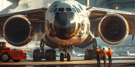 Pre-Flight Preparations: A team of aviation professionals meticulously inspect an aircraft engine, ensuring safety and readiness for take-off.