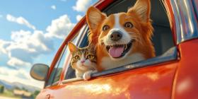 Road Trip Buddies: A Golden Retriever and a Curious Kitten Enjoy the Ride