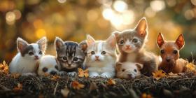 A Furry Posse: A Kitten, Puppies, a Bunny, and a Bird Strike a Pose.