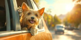 Road Trip Buddies: A Golden Retriever and a Curious Kitten Enjoy the Ride