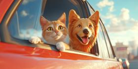 Road Trip Buddies: A Golden Retriever and a Curious Kitten Enjoy the Ride