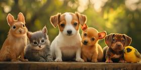 A Furry Posse: A Kitten, Puppies, a Bunny, and a Bird Strike a Pose.
