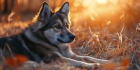 Joyful Canine Portrait: A Smiling Aussie Shepherd Basking in the Warm Sunlight