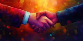 Neon-Illuminated Handshake: Formal Agreement in a Modern Business Setting
