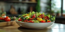 Fresh and Vibrant: A Colorful Salad of Vegetables on a Wooden Table