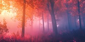 Autumnal Enchantment: A Path Winds Through a Forest of Crimson Birch Trees