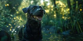 Joyful Canine Portrait: A Smiling Aussie Shepherd Basking in the Warm Sunlight