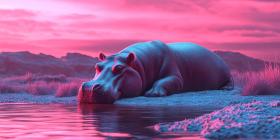 Nighttime Prowl: A Majestic Hippopotamus in a Dreamlike Jungle