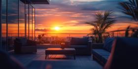 Urban Oasis: A Rooftop Terrace with Stunning Sunset Views