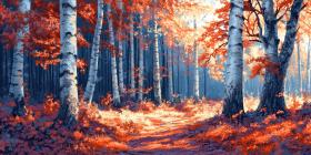 Autumnal Enchantment: A Path Winds Through a Forest of Crimson Birch Trees