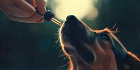 Administering Medicine: Close-Up of a Dog Receiving Liquid from a Dropper Outdoors