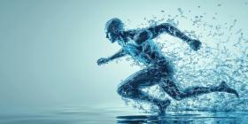 Dynamic Water Figure in Motion: Surreal Scene of a Human-Like Water Form Running on a Water Surface