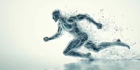 Dynamic Water Figure in Motion: Surreal Scene of a Human-Like Water Form Running on a Water Surface