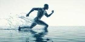 Dynamic Water Figure in Motion: Surreal Scene of a Human-Like Water Form Running on a Water Surface