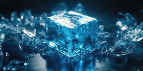 Crystal Clarity: A Single Ice Cube Stands Out Amidst Shattered Fragments