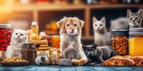 Pet Pantry Paradise: A Colorful Display of Food and Treats for Furry Friends