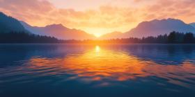Golden Hour Serenity: A Sun-kissed Mountain Lake at Sunset