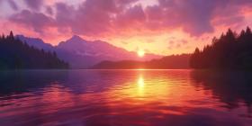 Golden Hour Serenity: A Sun-kissed Mountain Lake at Sunset