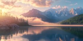 Golden Hour Serenity: A Sun-kissed Mountain Lake at Sunset