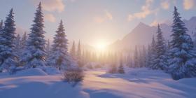 A Winter Sunrise Paints the Snow-Capped Mountains with Gold