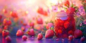 A Sun-Kissed Symphony of Strawberries: Ripe and Juicy, Captured in a Jar of Sweet Summer Memories.