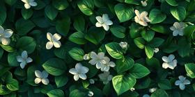 A Tapestry of Life: Delicate White Blossoms Emerge from a Sea of Lush Green Leaves, Creating a Breathtaking Floral Tapestry.