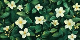 A Tapestry of Life: Delicate White Blossoms Emerge from a Sea of Lush Green Leaves, Creating a Breathtaking Floral Tapestry.