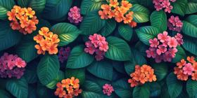 A Tapestry of Crimson and Jade: A Symphony of Vibrant Red Blossoms Dances Amongst a Sea of Lush Green Leaves, Creating a Mesmerizing Floral Tapestry.
