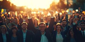 Unified Gesture: Large Group Raising Hands in Outdoor Professional Gathering