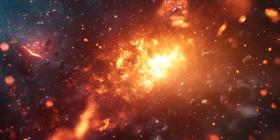 A Blaze of Glory: A Fiery Explosion Illuminates the Darkness, Leaving a Trail of Golden Sparks and Embers in its Wake.