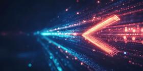 The Digital Frontier: A Glowing Arrow of Progress Cuts Through the Matrix of Code, Guiding Us into the Future of Technology.