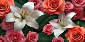 A Nocturnal Bloom: A Lush Tapestry of Roses and Lilies, Bathed in Moonlight, Unfurls Against a Velvet Night Sky.