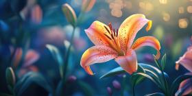 Sunlight's Embrace: A Delicate Lily, Bathed in Golden Light, Unfurls its Petals, Speckled with Sunlight's Kiss.