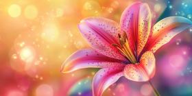 Sunlight's Embrace: A Delicate Lily, Bathed in Golden Light, Unfurls its Petals, Speckled with Sunlight's Kiss.