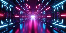 A Neon Odyssey: A Futuristic Passageway Shimmers with Pulsating Lights, Inviting Exploration into the Unknown.