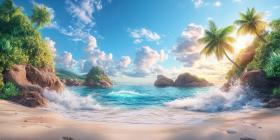 Tropical Paradise: A Secluded Beach with Crystal-Clear Water and Swaying Palms