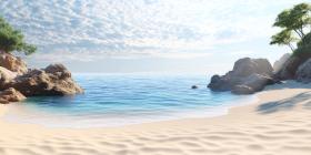 Tropical Paradise: A Secluded Beach with Crystal-Clear Water and Swaying Palms