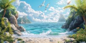 Tropical Paradise: A Secluded Beach with Crystal-Clear Water and Swaying Palms