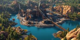 Heavy machinery carves its way through the rugged mountain terrain, extracting resources from the earth