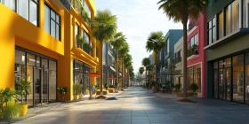 A Stroll Through Color: A vibrant street lined with colorful buildings and lush greenery invites you to explore and discover hidden gems.