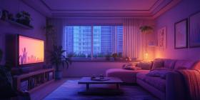 Warmth and Vibrancy: A sun-drenched living room, bathed in a warm orange glow, invites relaxation and a sense of cheerful energy.