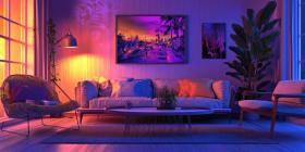 Warmth and Vibrancy: A sun-drenched living room, bathed in a warm orange glow, invites relaxation and a sense of cheerful energy.