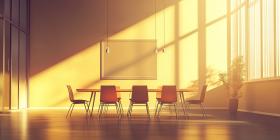 Meeting in the Spectrum: A modern meeting room bathed in a vibrant spectrum of color, inviting collaboration and creativity.