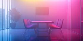 Meeting in the Spectrum: A modern meeting room bathed in a vibrant spectrum of color, inviting collaboration and creativity.