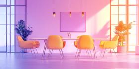 Meeting in the Spectrum: A modern meeting room bathed in a vibrant spectrum of color, inviting collaboration and creativity.