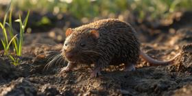 Nocturnal Prowler: A sleek, dark rodent emerges from the shadows, its eyes gleaming with predatory intent, ready to navigate the night.