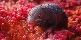 Nocturnal Prowler: A sleek, dark rodent emerges from the shadows, its eyes gleaming with predatory intent, ready to navigate the night.